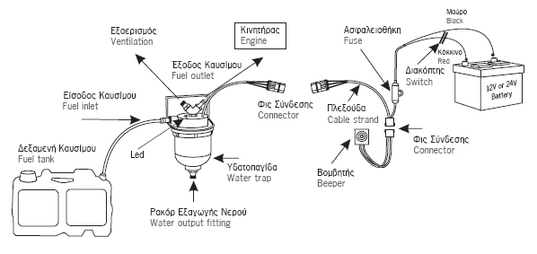 The System is activated when about 20% of water concentration is detected in the System’s water-trap, where water is slowly gathered at the bottom part. Automatically, the beeper sounds and the LED changes from “green” to “red”. All the user has to do is turn his engine off for a few minutes, extract the water by opening the water and ventilation valves, and continue cruising with no further problems. Additionally, thanks to the special, transparent water-trap, one is allowed to “check” on the content’s status and can therefore remove water without spilling even a drop of fuel!